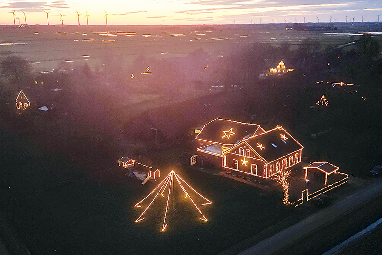 Einfach nur schön: Fast alle Häuser in Bingumgaste sind pünktlich zum ersten Advent mit Lichterketten geschmückt. Damit erstrahlt das kleine Rheiderländer Dorf in der dunklen Jahreszeit morgens und abends wieder in festlichem Licht.