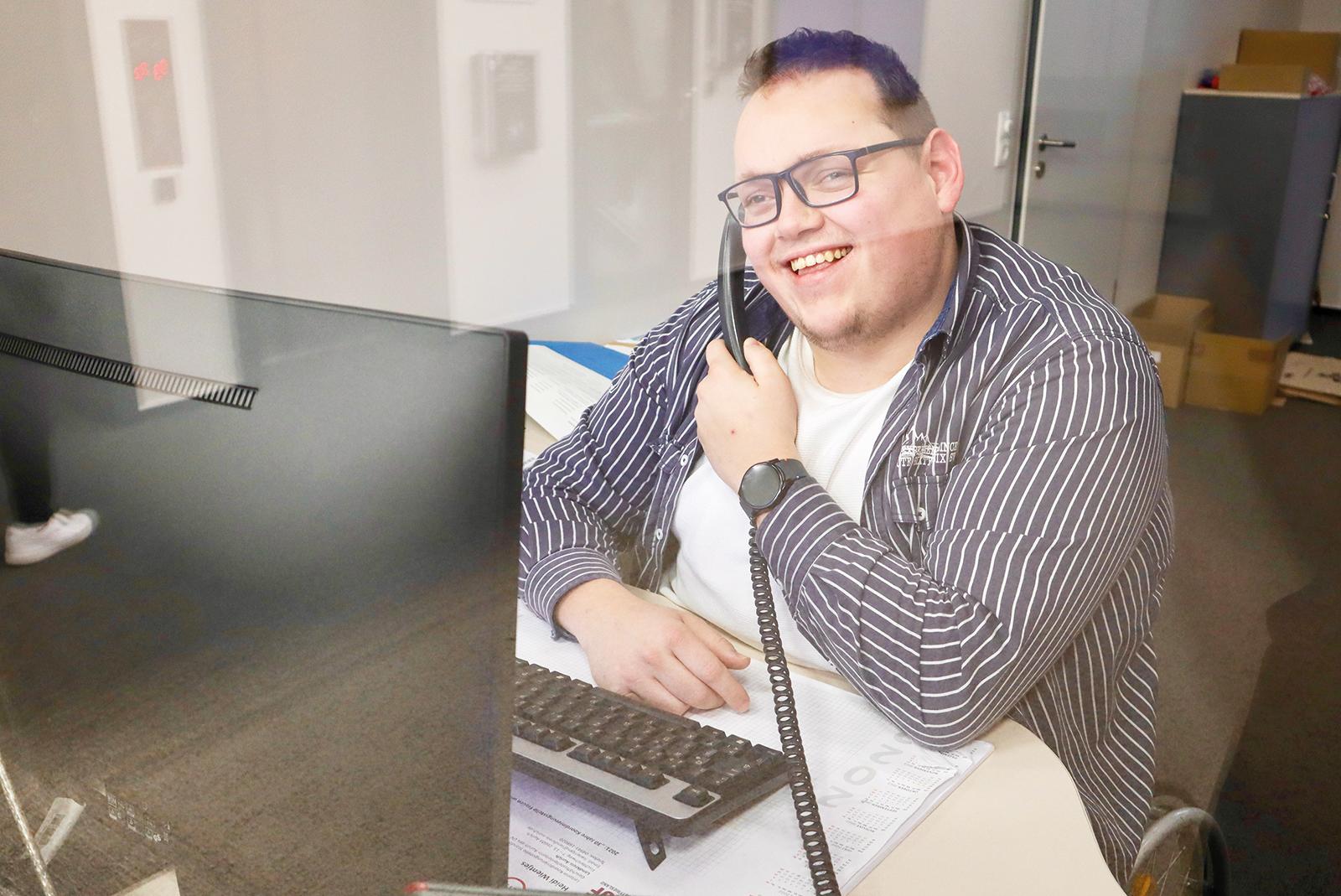 Holger Jürgens ist heute fester Mitarbeiter am Empfang des Landkreises Aurich. © Foto: Agentur für Arbeit Emden-Leer