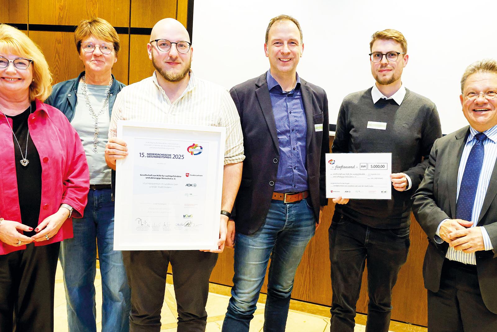 Die Suchtkrankenhilfe Ostfriesland ist für ihr Projekt »Suchtprävention im Landkreis Leer und der Stadt Emden« mit dem 15. Niedersächsischen Gesundheitspreis in der Kategorie »Prävention als Schlüssel: Aktiv werden gegen Sucht« ausgezeichnet worden.