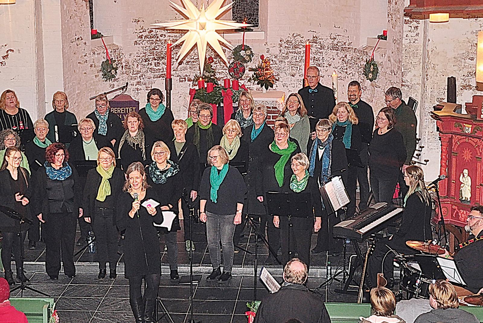 Voll besetzt war die festlich geschmückte Matthäikirche in Bingum, als der 32-köpfige Gospelchor »Celebration« singend mit einem adventlichen Canon in die Kirche einzog. Der Chor gab am Nikolausabend ein besinnliches Adventskonzert.