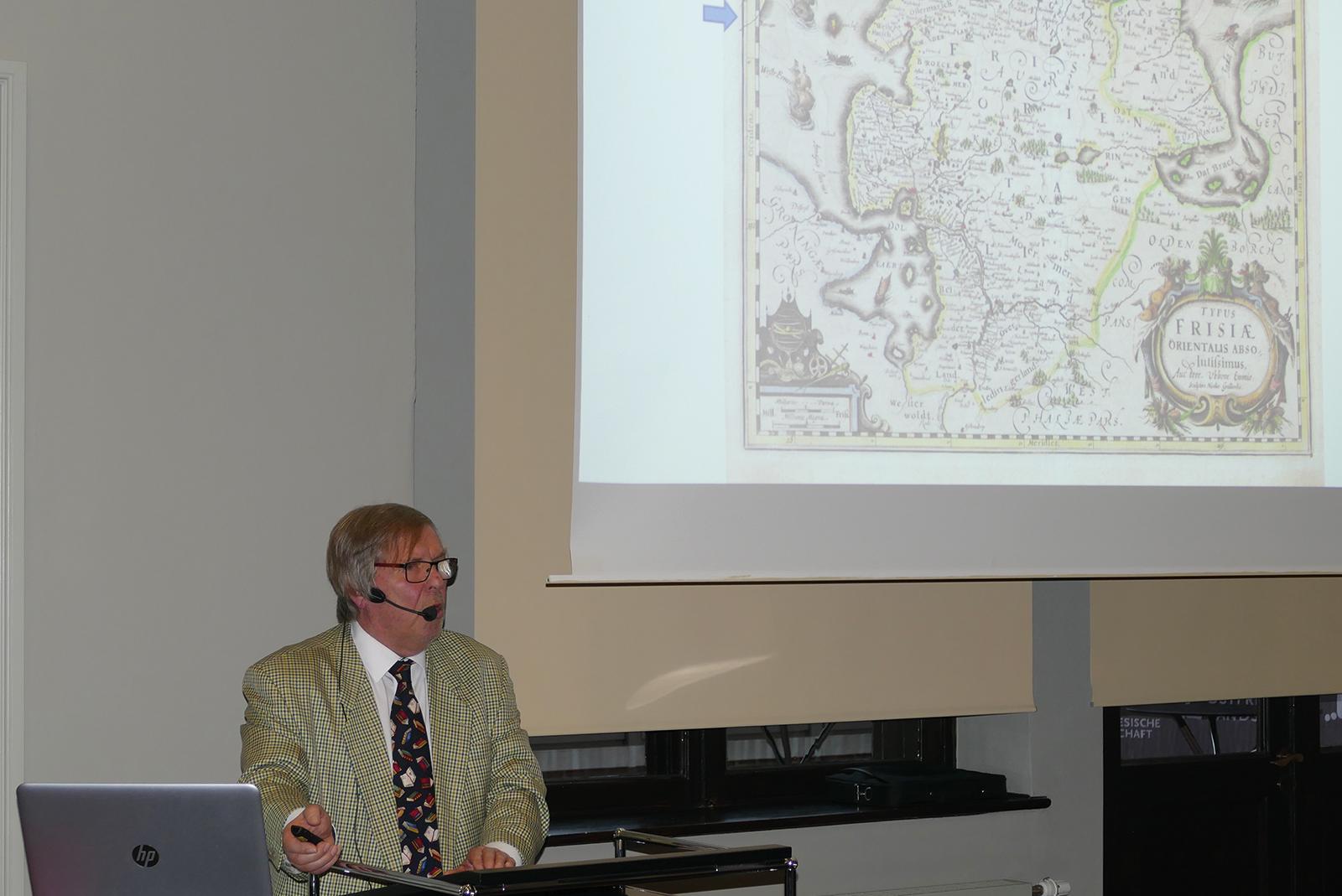 »Kartenpapst« Michael Recke weiß ganz genau, welche Ostfrieslandkarte von Ubbo Emmius wann entstanden ist. © Foto: Jürgens