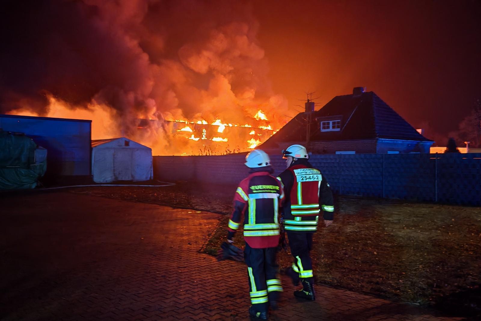 Lagerhalle in Steenfelde lichterloh in Flammen