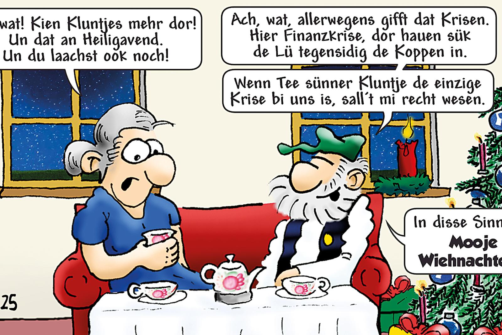 Den krisenerprobten Rheiderländer kann so schnell nichts erschüttern. Selbst bei der »heiligen Tee-Zeremonie« kann er Ausfälle verkraften, wie RZ-Karikaturist Thomas Trey in seinem Weihnachtscartoon feststellt. Ein bisschen mehr Gelassenheit tut sicher allen gut. Da kann sich der ...