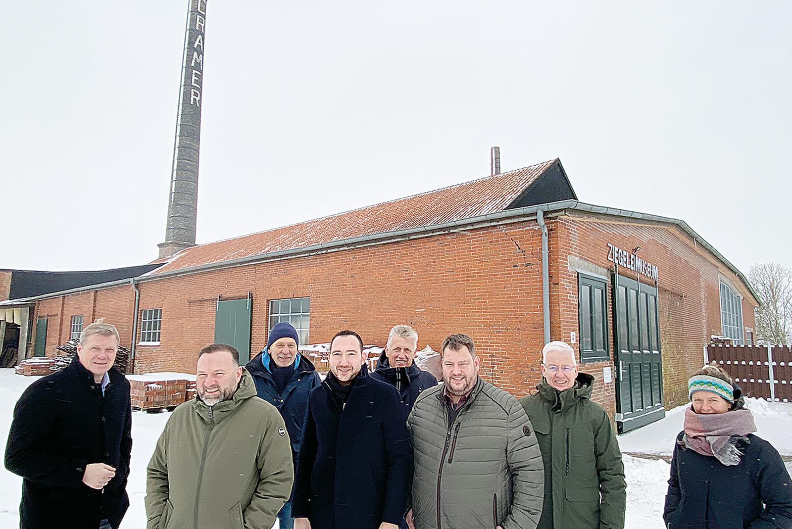 »Ziegelei-Gipfel« im Midlumer Museum: (von links) Ulf Thiele (CDU-Landtagsabgeordneter), Tim Philipps (CDU Jemgum), Wilfried Voß (Vorsitzender Ziegeleiverein), Nico Bloem (SPD-Landtagsabgeordneter), Peter Südbeck (Nationalparkverwaltung), Rainer Smidt (Gemeinde Jemgum), Landrat Matthias Groote und Astrid Martin (Biosphärenregion).  © Foto: Hanken