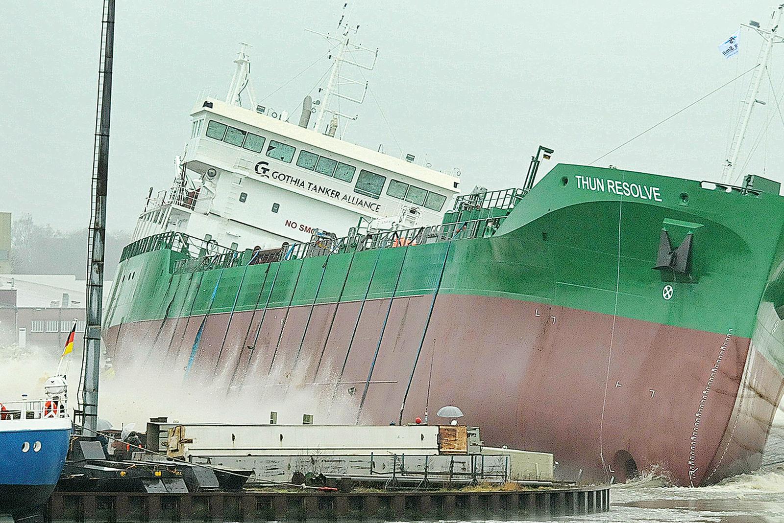 Der 115 Meter lange Spezialtanker »Thun Resolve« ist heute auf der Ferus-Smit-Werft im Industriehafen von Leer vom Stapel gelaufen. Zahlreiche »Sehleute« verfolgten den Stapellauf trotz des regnerischen Wetters. Als viertes von acht Schiffen einer Serie ist der Chemikalientanker im Auftrag der ...