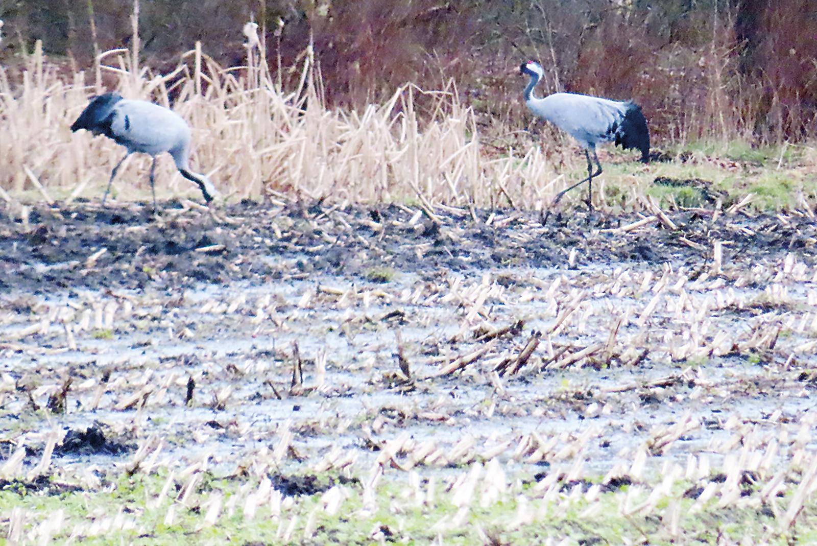 Besondere Gäste im Rheiderland: Zwei Kraniche stolzierten jüngst auf abgeernteten Maisäckern beim Hochmoor Wymeer herum. Wie RZ-Naturexperte Detlef Kolt­hoff feststellt, habe es in den vergangenen Jahren immer mal wieder Kranich-Sichtungen in diesem Bereich gegeben.