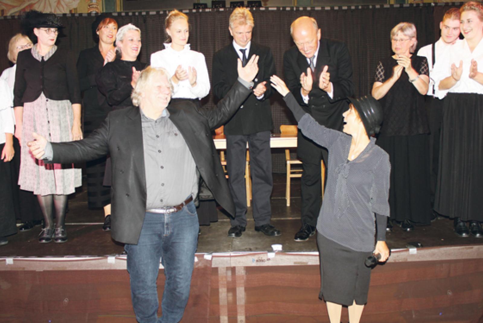 Ovationen für die beiden Autoren (im Vordergrund) Gerd Brandt und Christine Schmidt de Vries, die zudem auch Regie führt © Foto: Jürgens