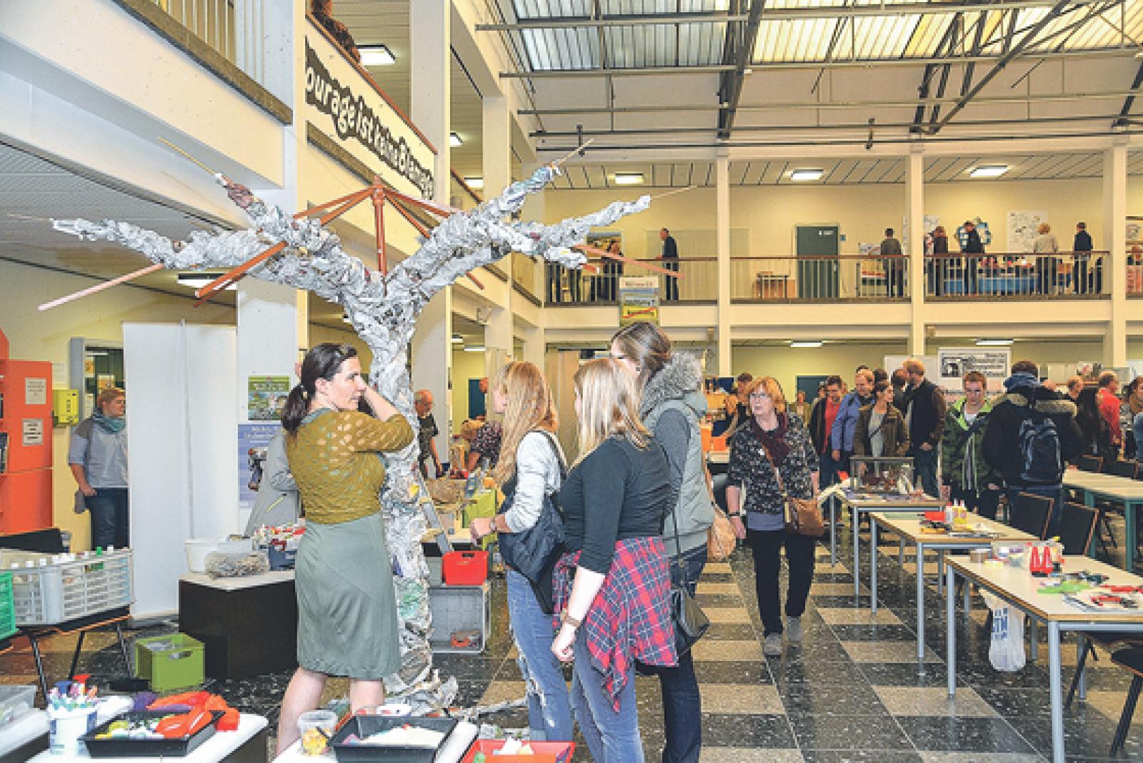 Die niederländische Künstlerin Gea Koopmann animierte die Besucher der Bildungsmesse, sich spontan an der Baumkunst zu beteiligen. © Foto: Former (Ostfriesische Landschaft)