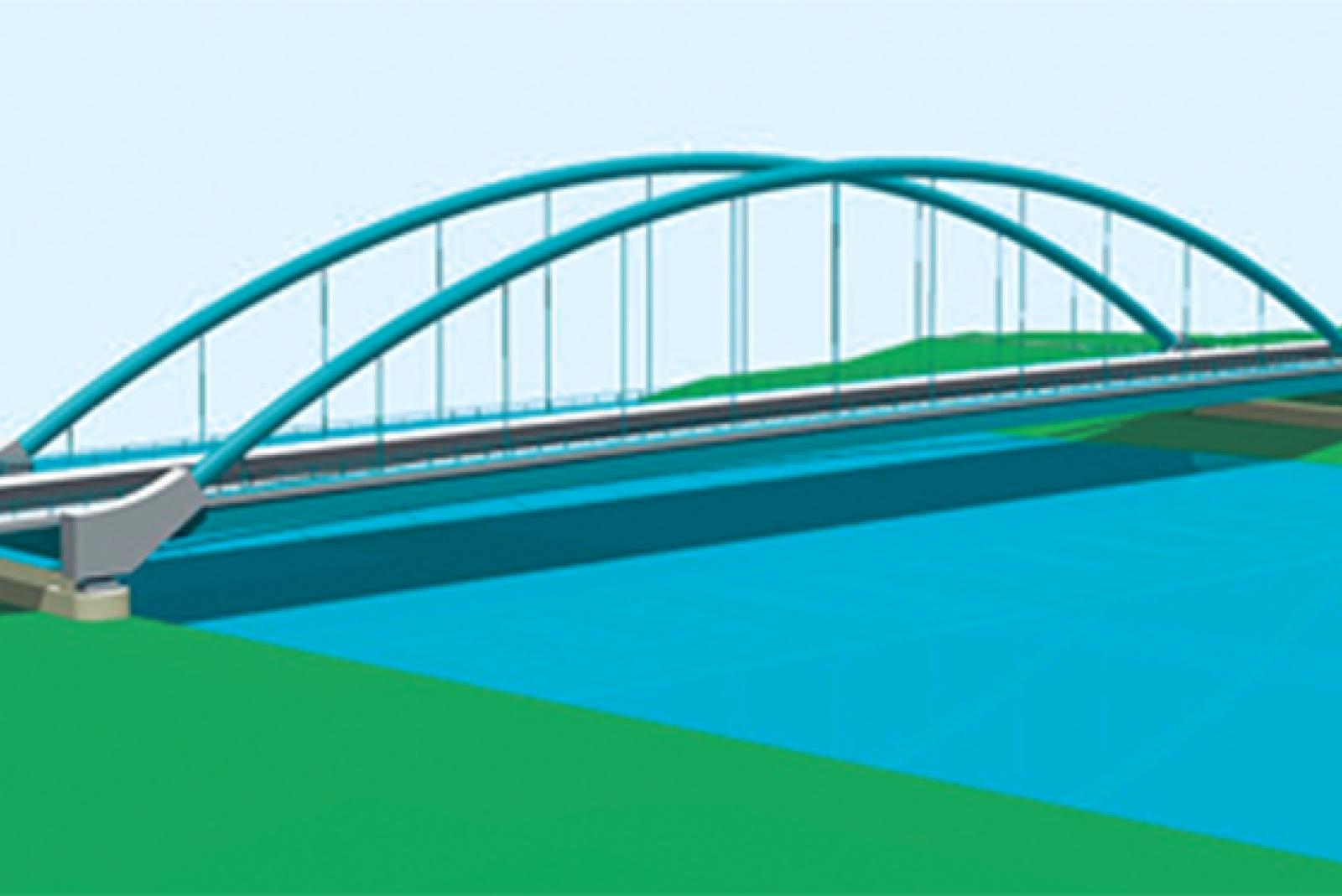 Geplant ist eine Bogenbrücke, bei der die Fahrbahn mit Seilen an zwei Bögen aufgehängt wird. © Grafik: Niedersächsische Landesbehörde für Straßenbau und Verkehr