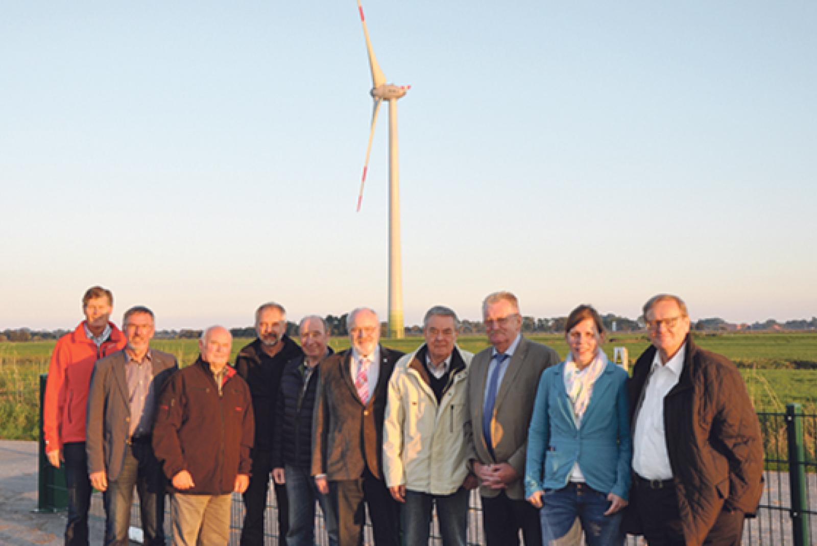 1000 Meter Mindestabstand zwischen Windkraftanlagen und Siedlungen fordert die CDU-Kreistagsfraktion, im Bild mit ihrem Vorsitzenden Dieter Baumann (rechts). Vierter von links Gerhard Janßen aus Bunde, dritter von links Broer Wübbena-Mecima aus St. Georgiwold. © Foto: CDU