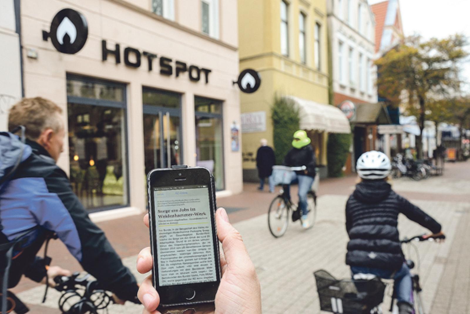 Auch RZ-Nachrichten könnten »City-Bummler« in Leer künftig über kostenloses W-LAN abrufen, wenn die Internet-Pläne für die Innenstadt umgesetzt werden. Das soll Ende dieses Jahres, spätestens aber Anfang 2016 der Fall sein. © Foto: Hanken