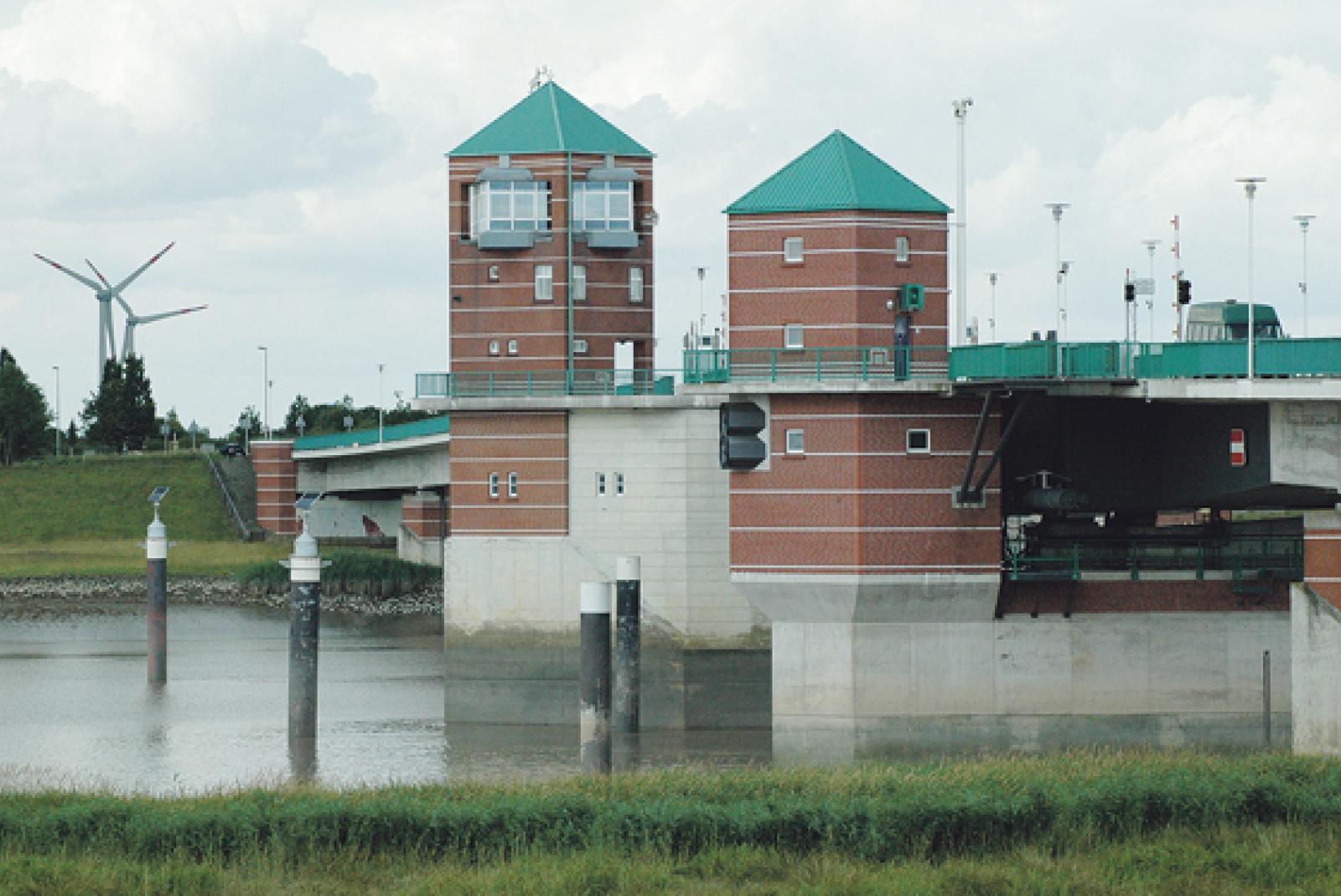 Eine nun installierte Lichtschranke soll Störungen bei der Bedienung der Klappen der Jann-Berghaus-Brücke in Bingum automatisch anzeigen.