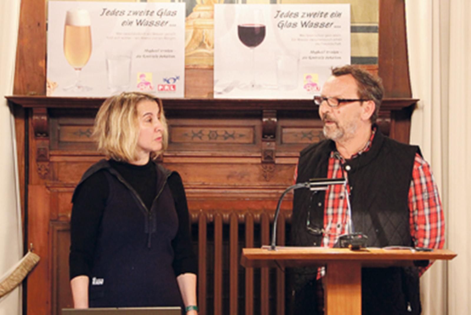 Wollen Sportvereine für das Suchtproblem sensibilisieren: Gloria Combarros und Walter Swiderke, hier bei ihrem Vortrag in Leer. © Foto: Flockenhagen