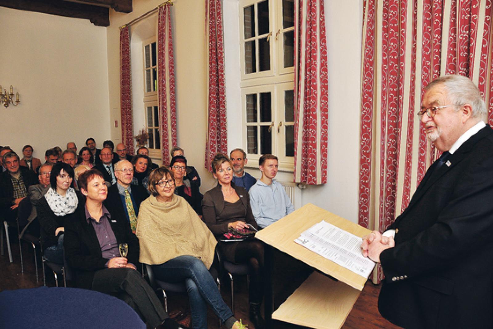 Zahlreiche Gäste erschienen zur Feierstunde und wurden vom Vorsitzenden Jörg Furch und VHS-Leiterin Heike-Maria Pilk per Handschlag begrüßt. Furch und ...