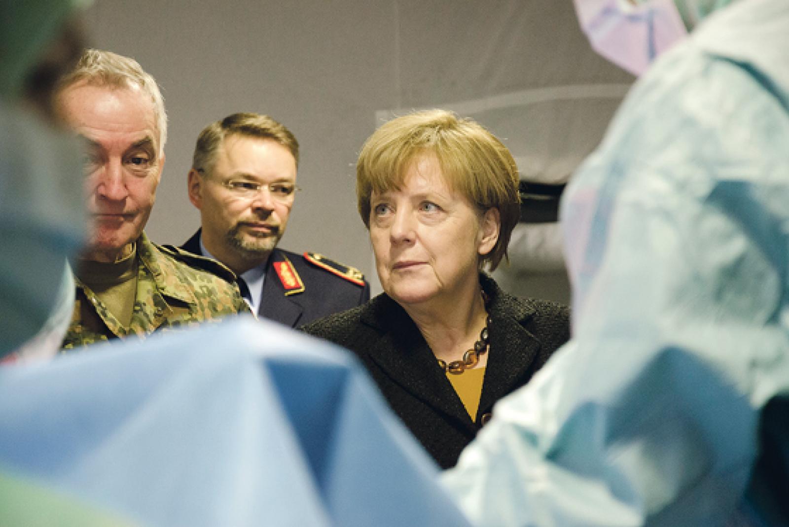 Im OP-Zelt erhielt Bundeskanzlerin Dr. Angela Merkel einen Einblick, wie chirurgische Maßnahmen im Einsatzfall vonstatten gehen. © Fotos: Hanken