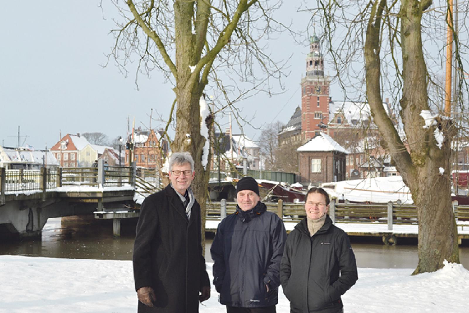 Der »Kastanienhain« an der Rathausbrücke in Leer soll zum Klimahain werden: Das wünschen sich jedenfalls Stadtbaurat Carsten Schoch und seine Kollegen vom Fachbereich für Umwelt, Ehler Kuno und Susanne Sander-Seyfert.