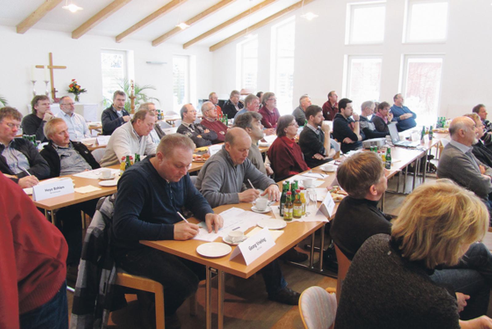 Zum »Runden Tisch« kamen Energie- und Baubeauftragte sowie Küsterinnen und Küster aus den Gemeinden der evangelisch-lutherischen Kirchenkreise Emden-Leer und Rhauderfehn im Lutherhaus in Leer zusammen. © Foto: Kirchenkreis