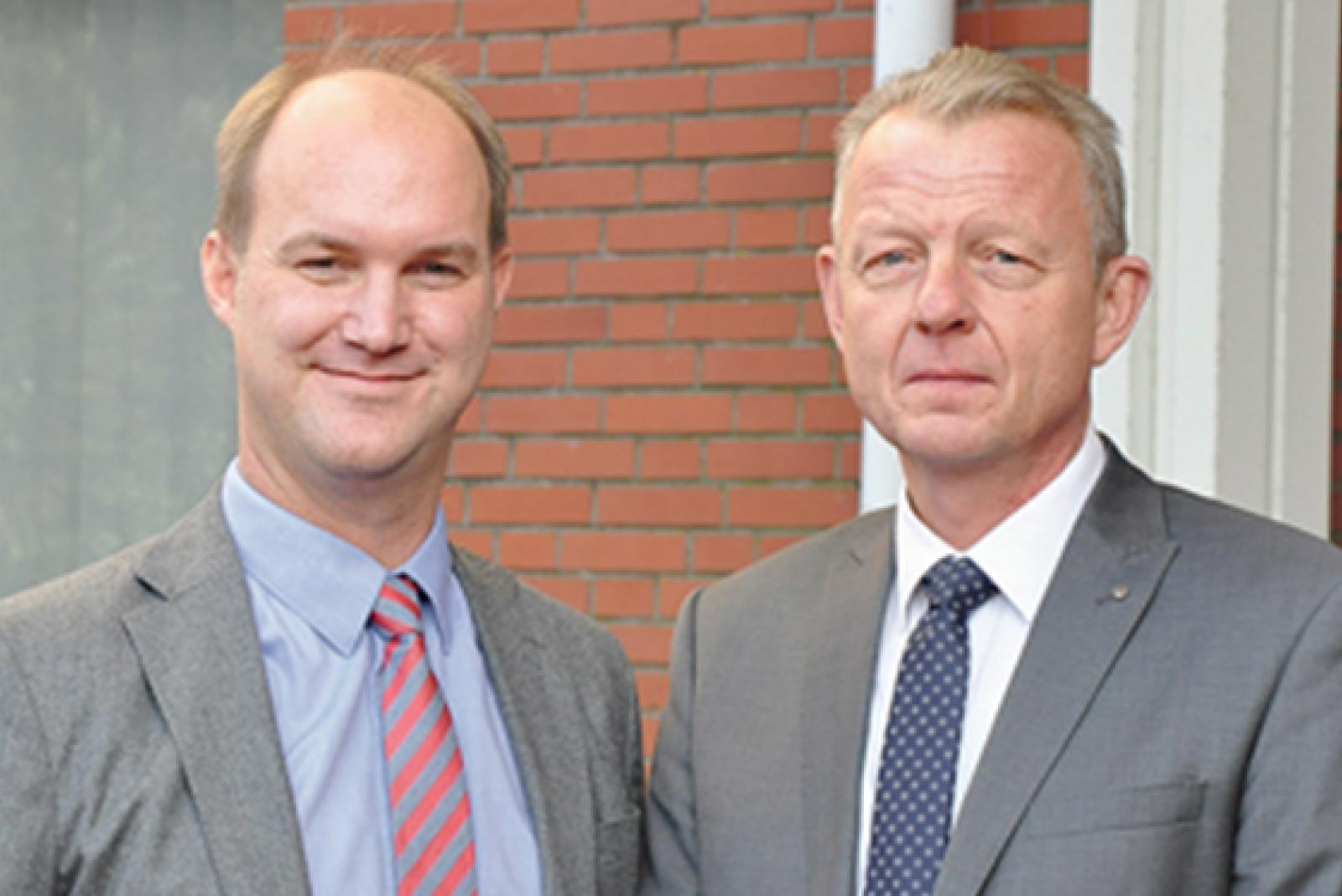Sehen die Flüchtlingssituation im Landkreis Leer als Chance: Roland Dupák (Vorsitzender der Geschäftsführung der Agentur für Arbeit Emden-Leer, rechts) und Eike Albrecht (Geschäftsführer des Zentrums für Arbeit). © Foto: Boelmann