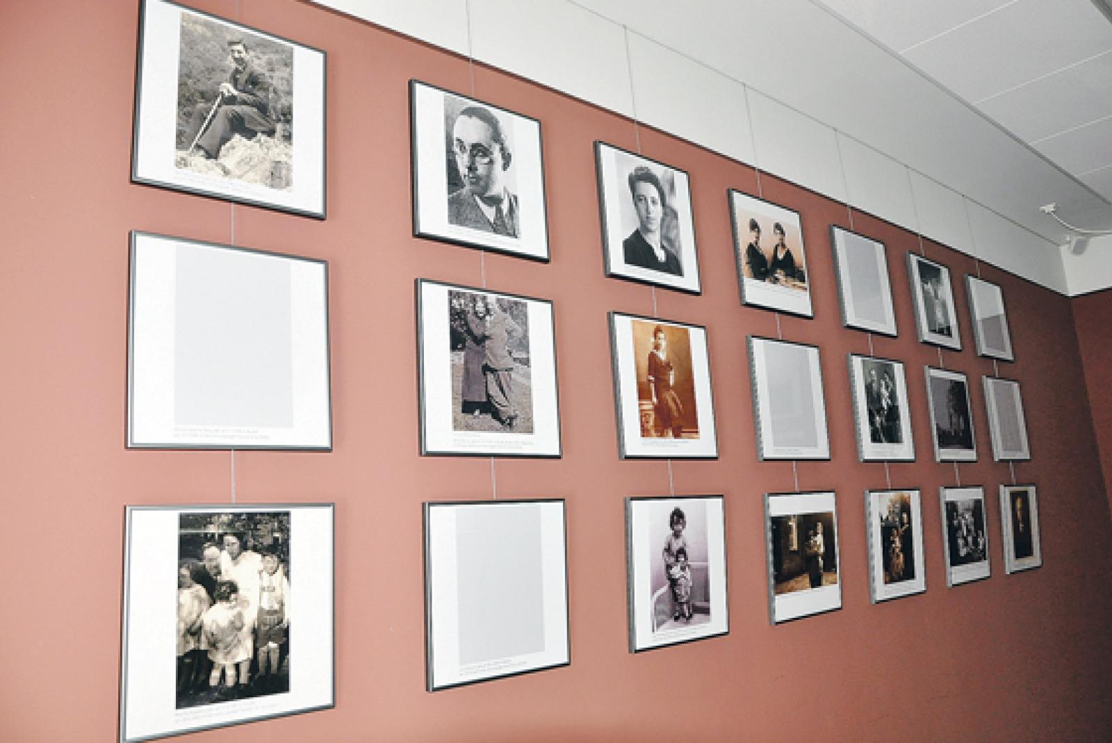 32 Bilder sollen an die jüdische Bevölkerung im Landkreis Leer erinnern. Einige Bildrahmen sind leer. »Wir haben viel mehr Namen, als wir zeigen können«, sagt Susanne Bracht, Leiterin der Ehemaligen Jüdischen Schule. © Foto: Boelmann