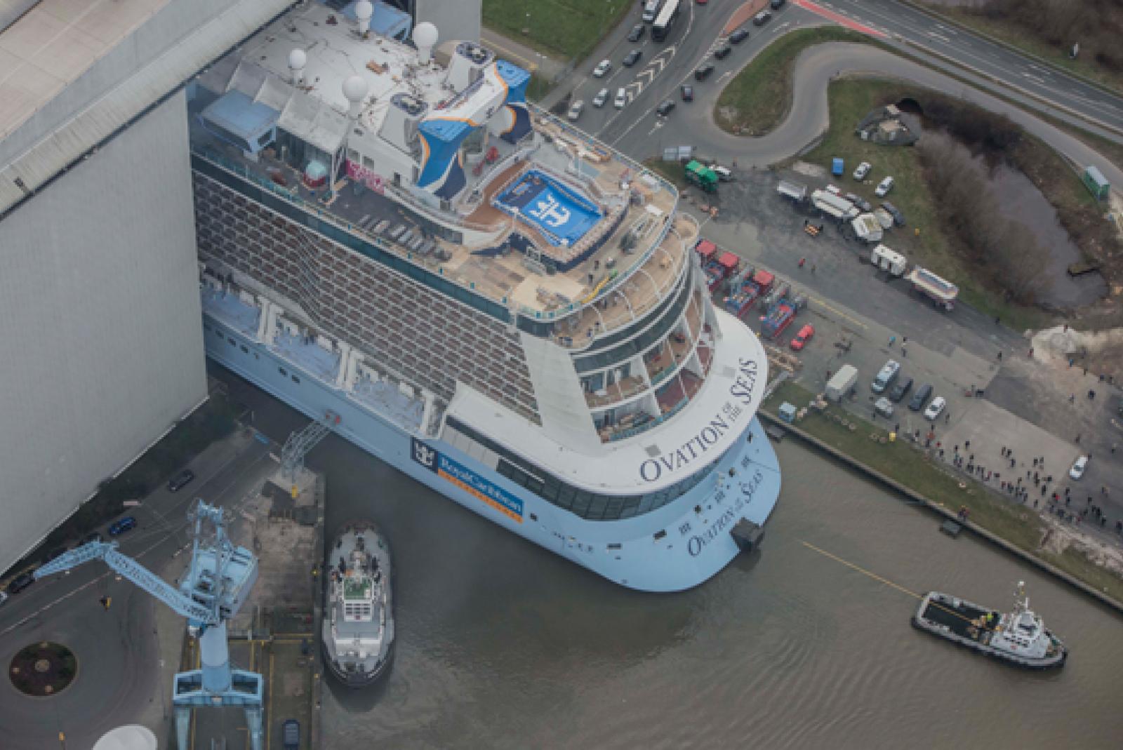 Das neue Kreuzfahrtschiff »Ovation of the Seas« hat am Donnerstagnachmittag die überdachte Baudockhalle der Papenburger Meyer Werft verlassen.