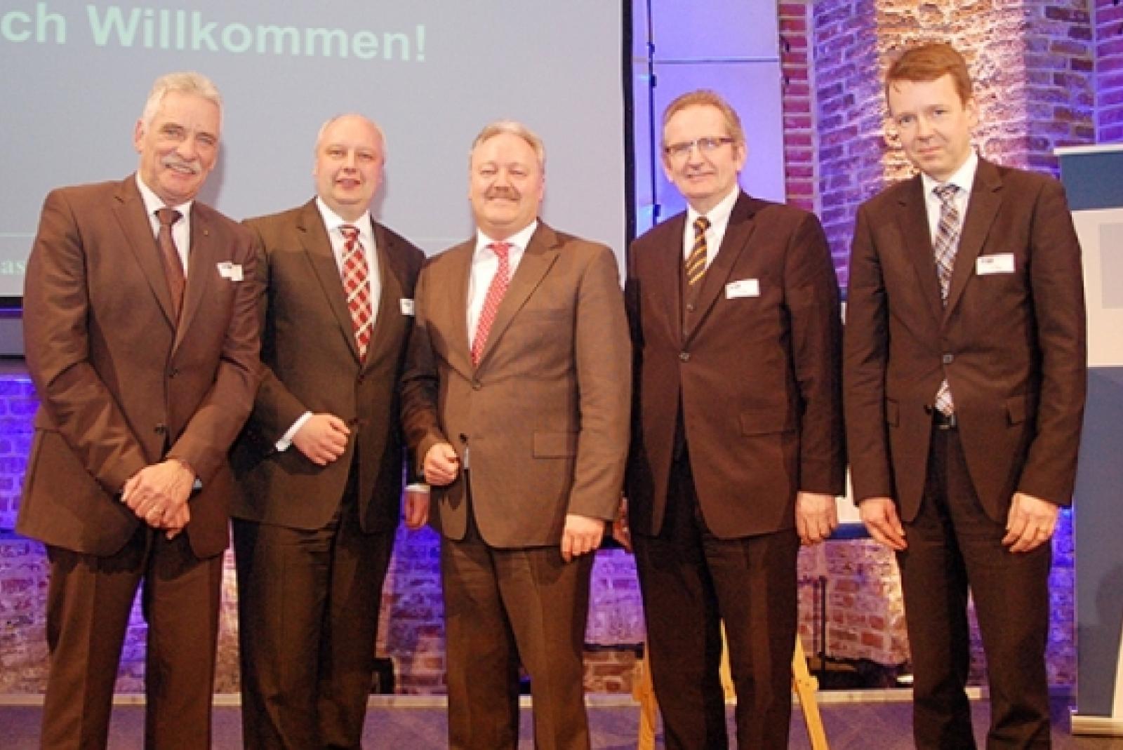 Gemeinsam mit dem neuen IHK-Präsidenten Diplom-Ingenieur Wilhelm-Alfred Brüning (links) verabschiedeten Wirtschaftsminister Jörg Bode, Landtagspräsident Hermann Dinkla und IHK-Geschäftsführer Dr. Torsten Slink (von links) den scheidenden Präsidenten Manfred Wendt im Rahmen einer Feierstunde. © Fotos: Jansen