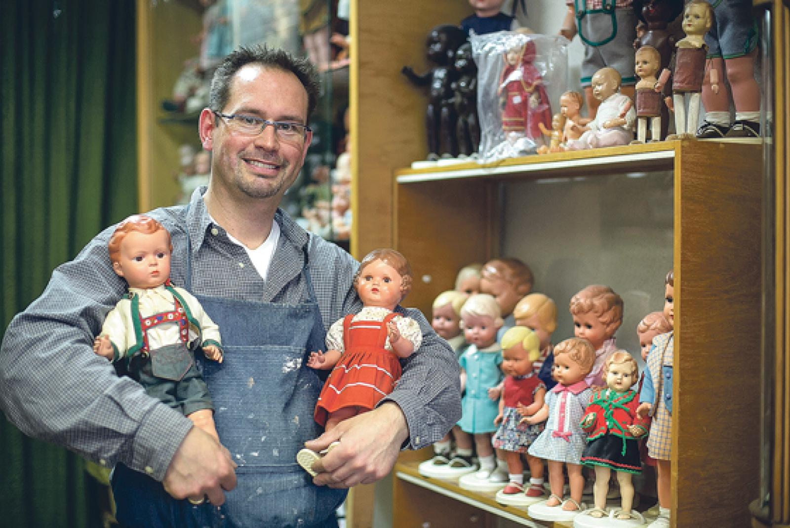 Auch Puppendoktor Christian Schneider ist am Sonntag beim »Antik & Design«-Markt in Leer mit dabei.  © Foto: privat