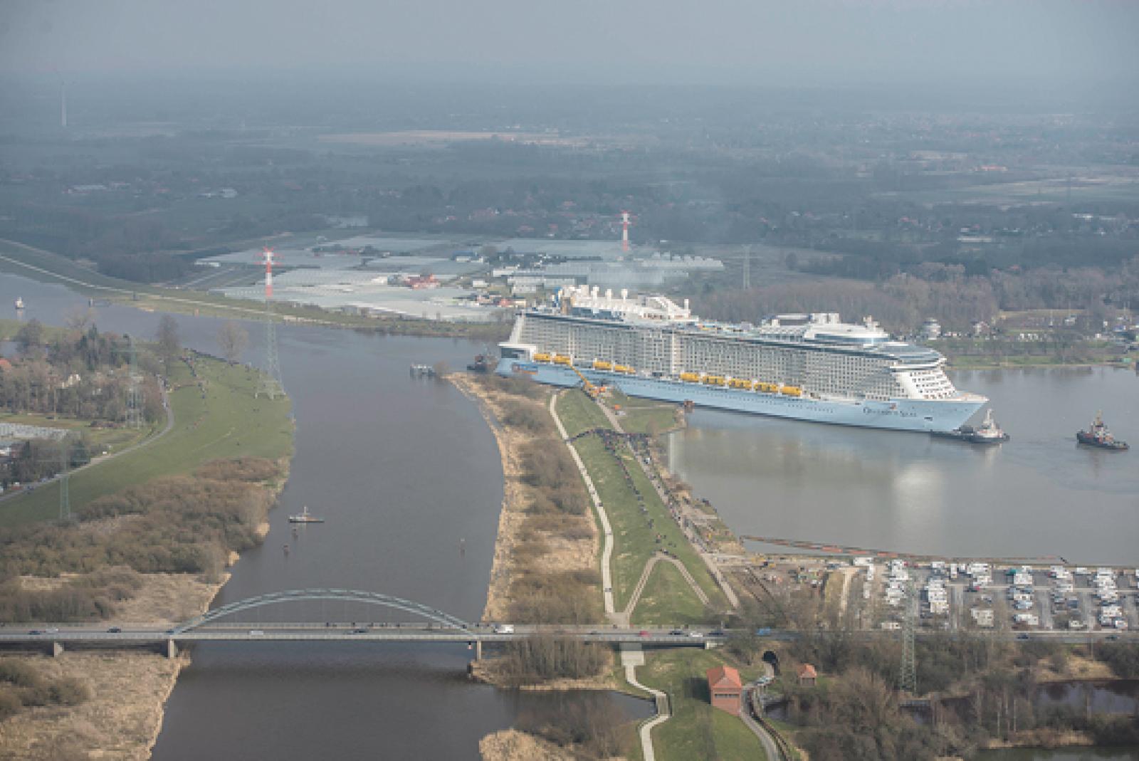 Kreuzfahrtschiff der Meyer Werft meistert Überführung durch die Ems