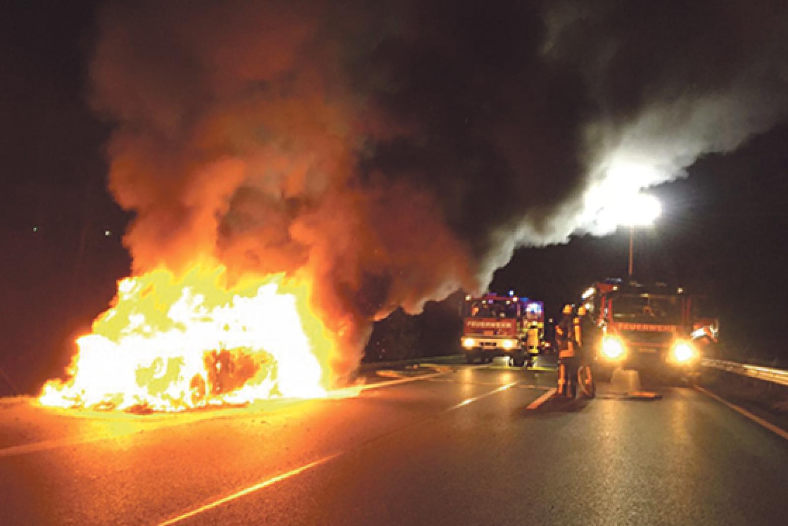 Mercedes in Vollbrand auf Autobahn 28