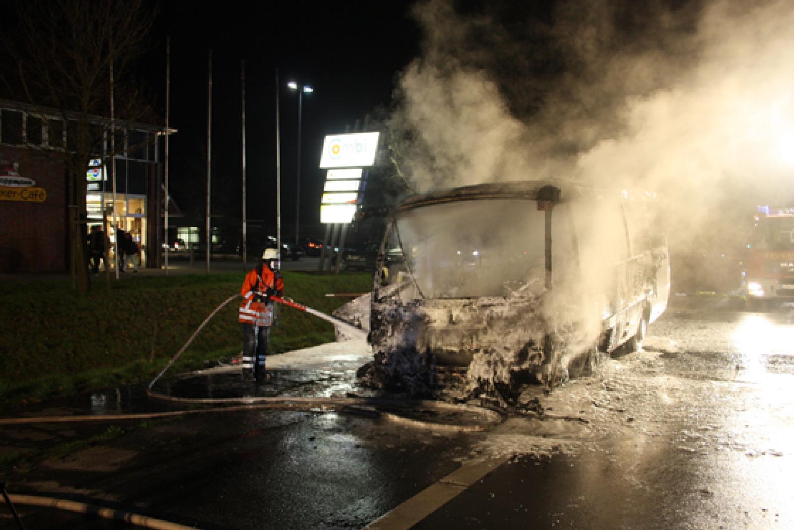 Am Sonnabend um 20.30 Uhr befuhr ein 56-jähriger Mann aus dem Wangerland die Bundesstraße 436 im Bereich Hesel mit einem Kleinbus in Richtung Aurich. Kurze Zeit später stand der Bus in Flammen.