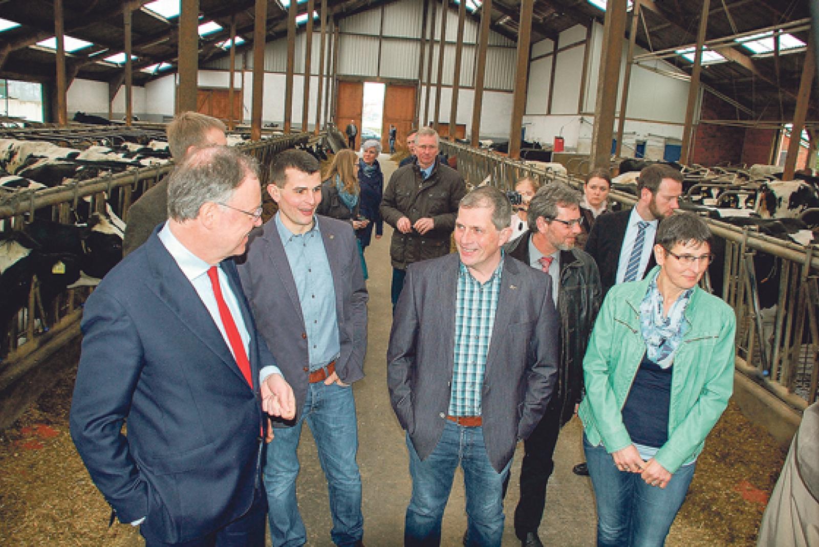 Für den Besuch in Holte ist der Landesvater nicht ganz passend gekleidet. Trotzdem hat Stephan Weil (SPD) keine Berührungsängste. Im dunkelblauen Anzug mit roter Krawatte stapft er durch den Kuhstall von Familie Schulte. Schließlich ist er ...