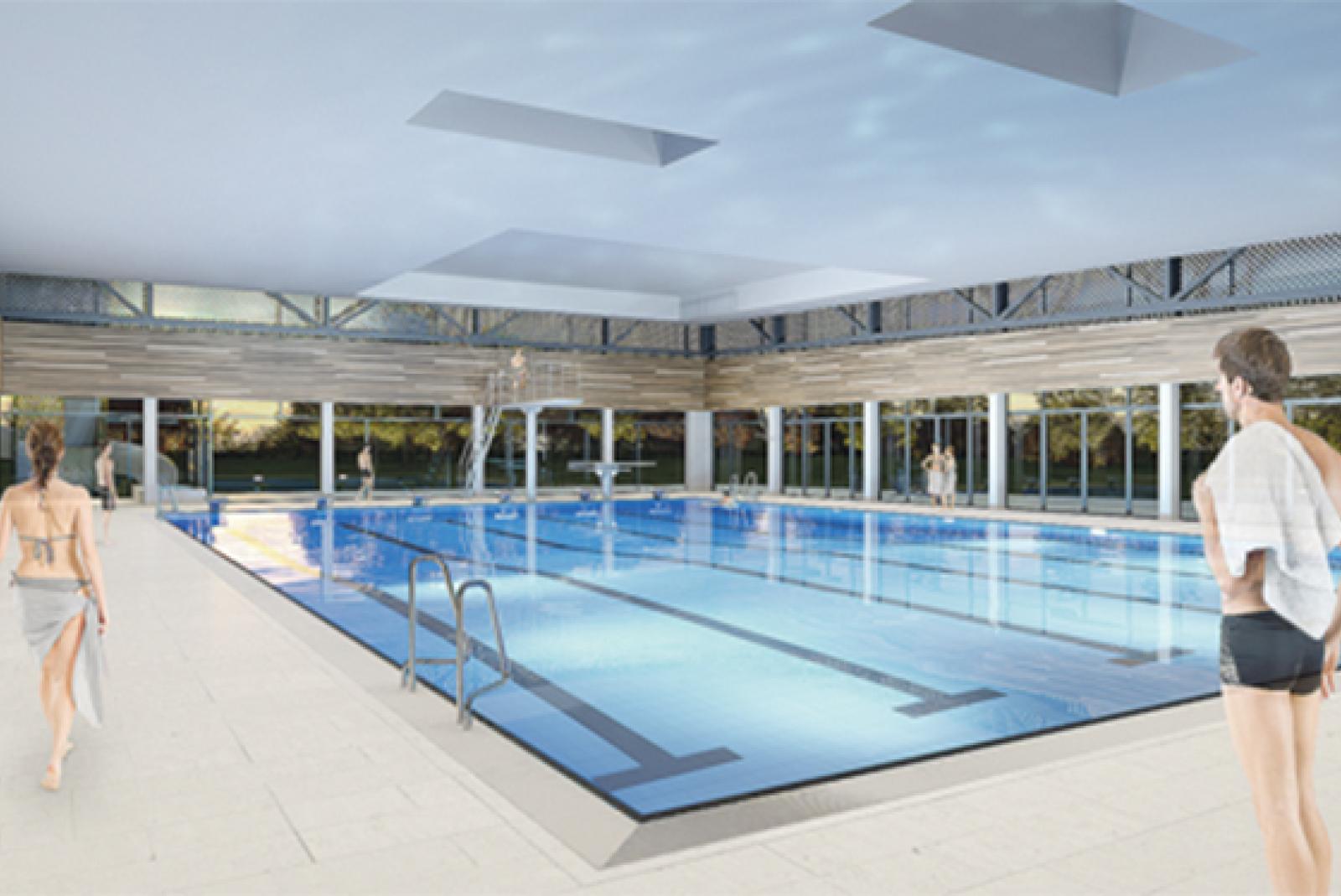 Neben einem Sportbecken mit sechs 25 Meter-Bahnen sieht der Entwurf des neuen Hallenbads in Leer ein Kurs- sowie ein Planschbecken vor. Der Sportausschuss sprach sich gestern für zusätzliche Ausstattungen aus, wodurch sich die geplante Investition um 615.000 Euro auf 11,24 Millionen Euro netto erhöht. © Grafik: Krieger Architekten Ingenieure