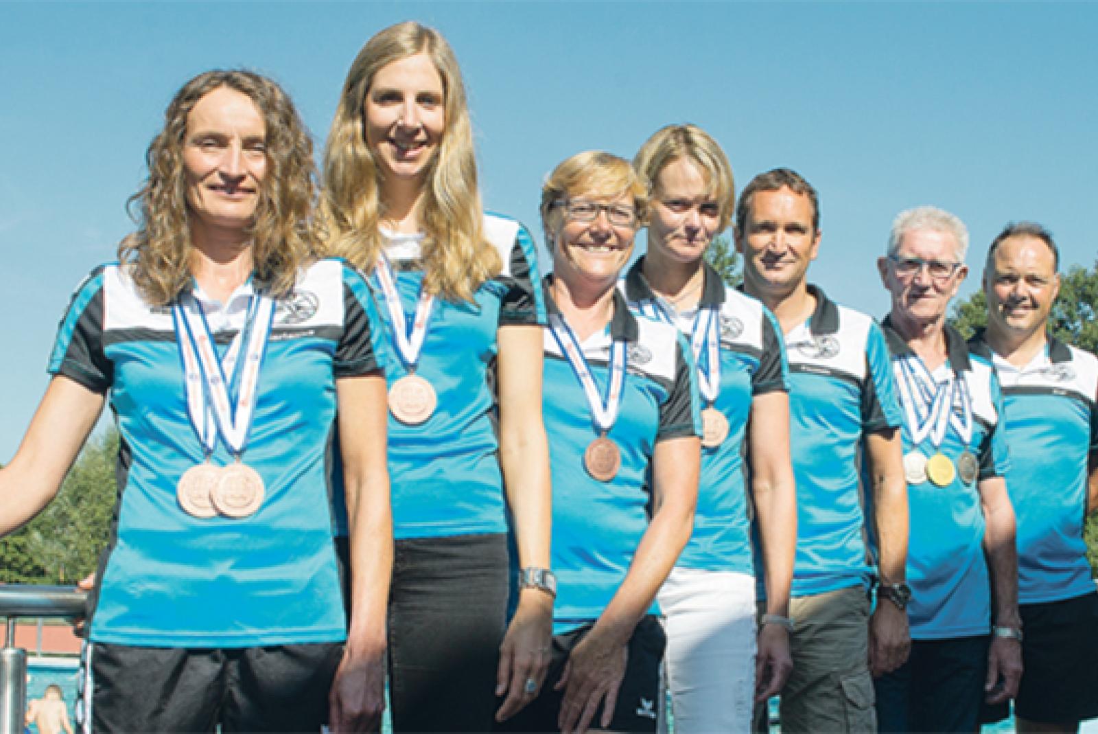 Sechs Medaillen brachten die Rettungsschwimmer der Ortsgruppe mit ins Rheiderland. Sie waren der Lohn für die harte Trainingsarbeit. Aus Weener in die große Welt des Rettungssports: May-Britt Hölscher, Marianne Schüür-Buntjer, Annegret Peters, Anne Huisinga, Thomas Exner, ...