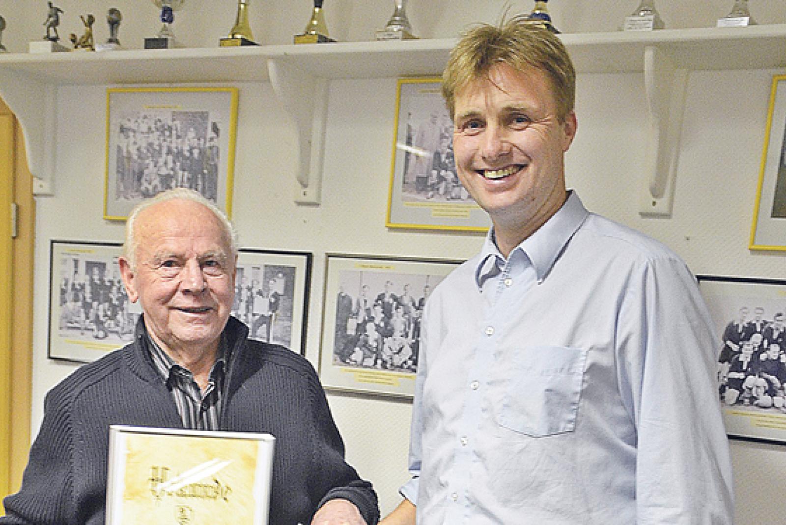 Vorzeigesportler und nun Ehrenmitglied: Johannes Schröder (l.) mit dem MTV-Klubchef Jens Duin. © Foto: privat