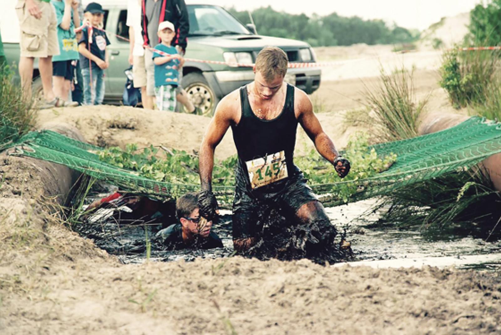 Bei Hindernisläufen durch Matsch und Wasser geht Henning Kruse an seine Grenzen