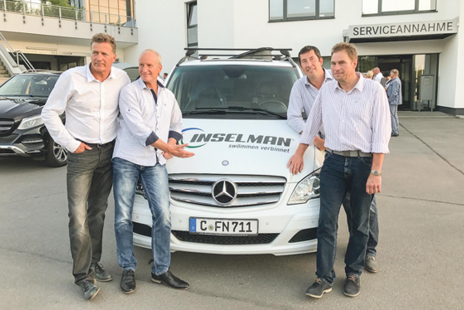 Die Leistungsschwimmer (von links) Frank Nebel, Jörg Stingl, Stev Theloke und Frank Riedel stellen sich ab Samstag der rauen Nordsee. © Foto: Baunack