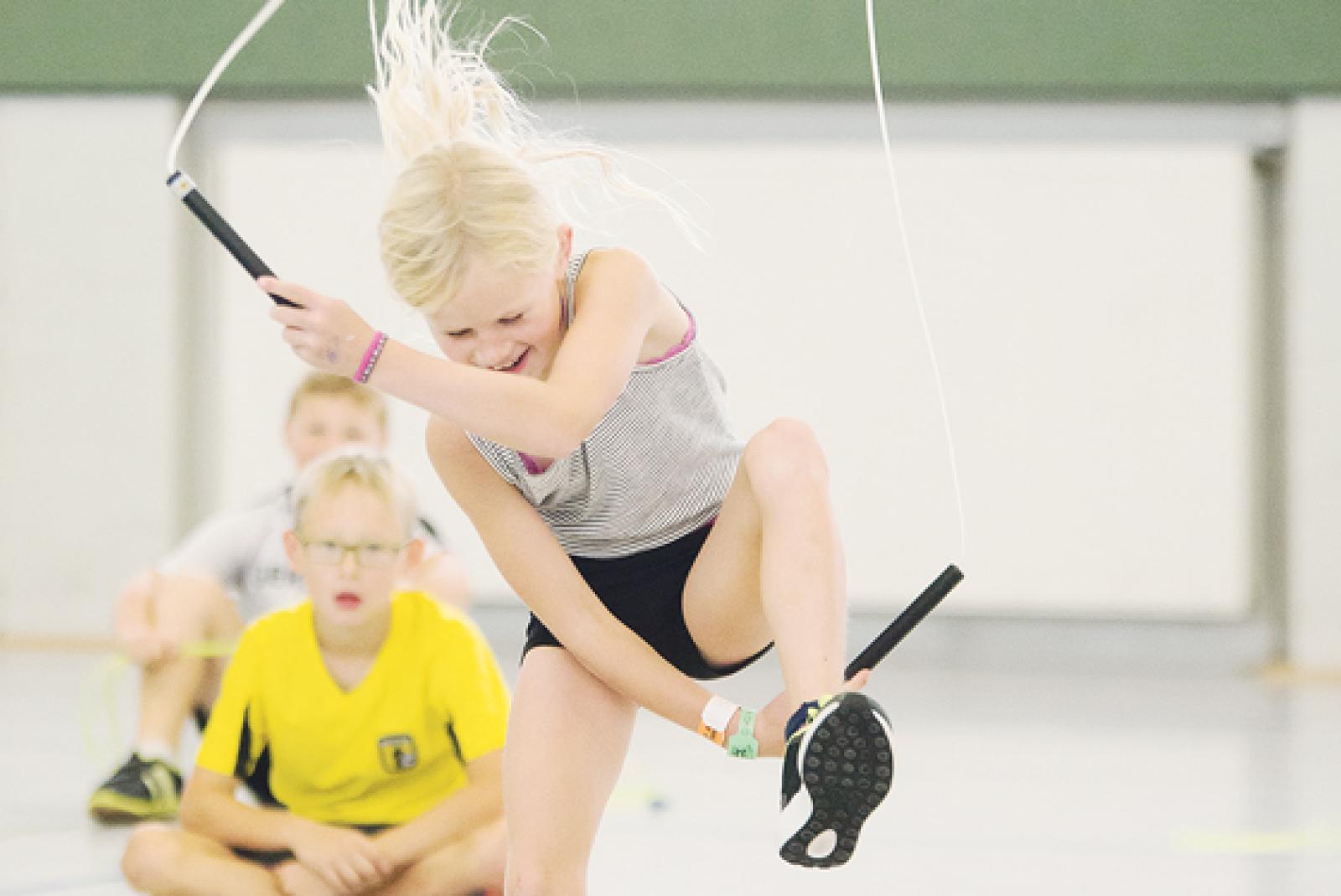 Seilspringen ist eine hohe Kunst und macht darüber hinaus jede Menge Spaß. Das wurde bei der Darbietung der Bingumer Viertklässler allzu deutlich. © Foto: Mentrup
