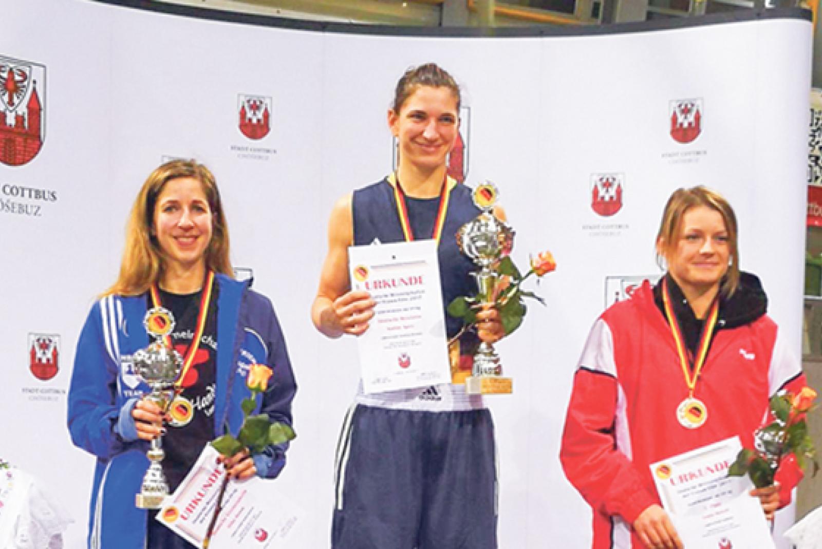 Stolz auf ihren zweiten Platz zeigte sich die Leeranerin Hilke Bosse bei der Siegerehrung. Nur Nadine Apetz war stärker als die Shake-Hands-Kämpferin. © Foto: privat