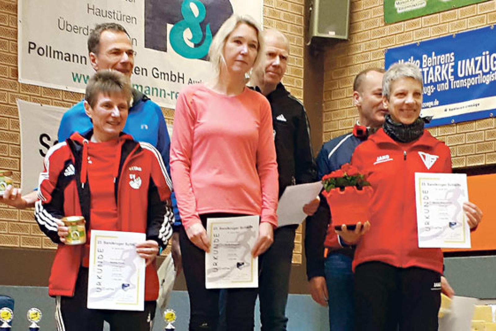 Auf dem Treppchen: Bettina Pilney (links) belegte im Neujahrslauf in ihrer Altersklasse W55 Rang zwei. © Foto: Hartema