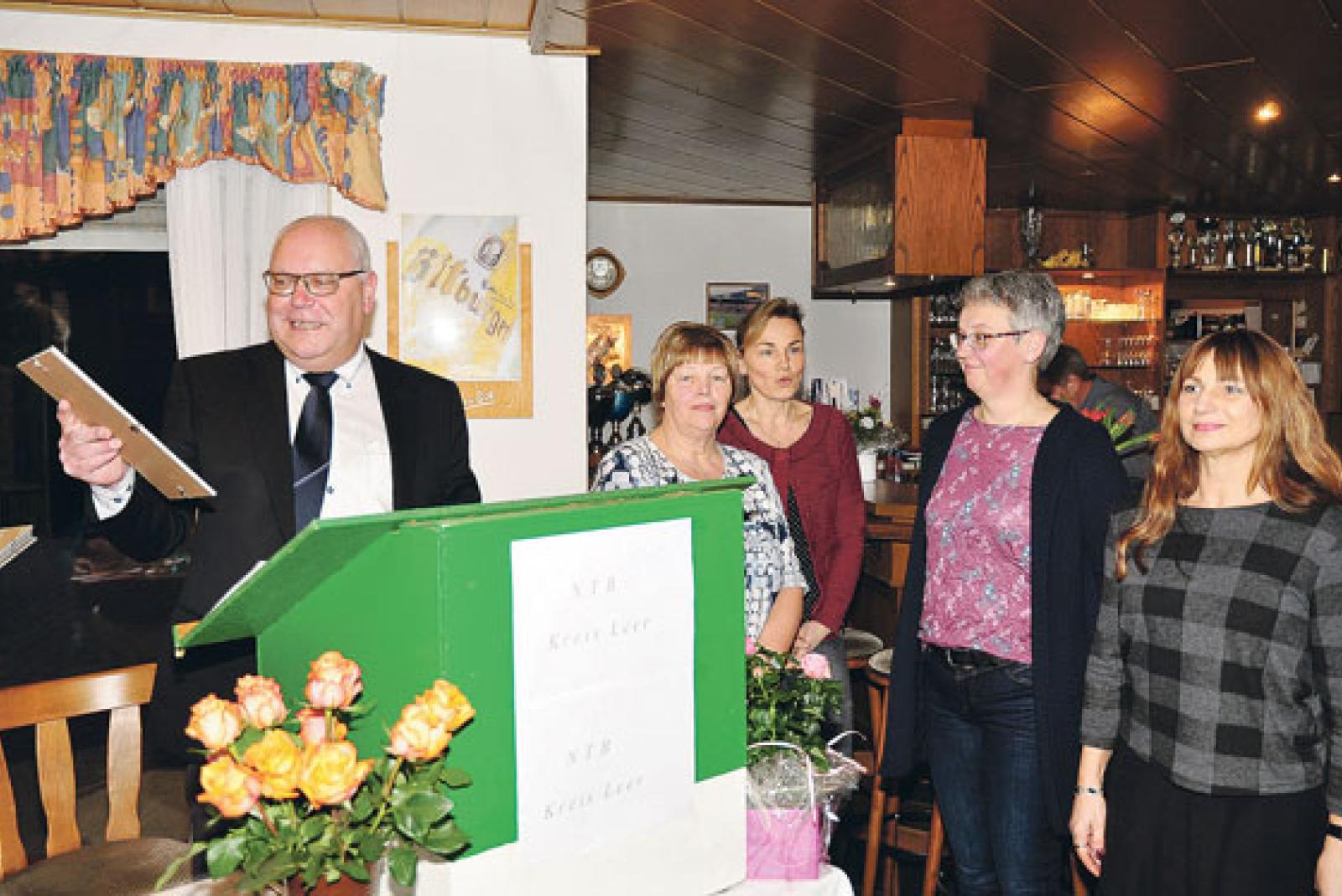 Zu den angenehmen Aufgaben eines Vorsitzenden gehören die Ehrungen: Hier zeichnet Frank Schüür gerade Renate Kube, Ulrike Ostendorp, Beate Bock und Gaby Engler (v. l.) aus. © Foto: Wolters