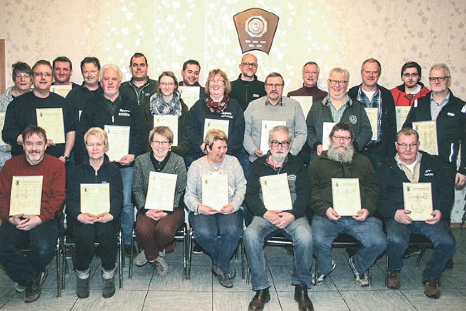 Die erfolgreichen Schützen: (vordere Reihe von links) Rolf Krummbein, Karin Meijer, Claudia Nickisch, Ursula Mierke, Anton Sosef, Hermann-Josef Rix, Bernhard Blaauw sowie (stehend) Margret Randt, Torsten Sinningen, Richard Landel, Wolfgang Pauw, Heinrich Meijer, Torsten Holzgrabe, Edda Gruben, Jörn Ammann, Ursula Schipper, Wilfried Kampen, Manfred Randt, Rolf Lömker, Jan Schipper, Bernhard Harders, Maik Krüger und Wilfried Meijer. © Foto: privat