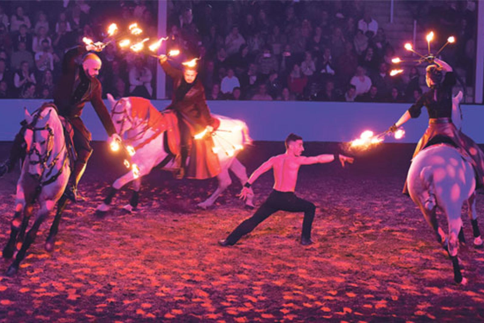 Gilles Fortier kreiert bereits seit 20 Jahren aufregende Schaubilder. Gemeinsam mit seinem Sohn Thomas begeisterte er am Samstag in Leer mit Pferden und Feuerkunst. © Fotos: Gleich