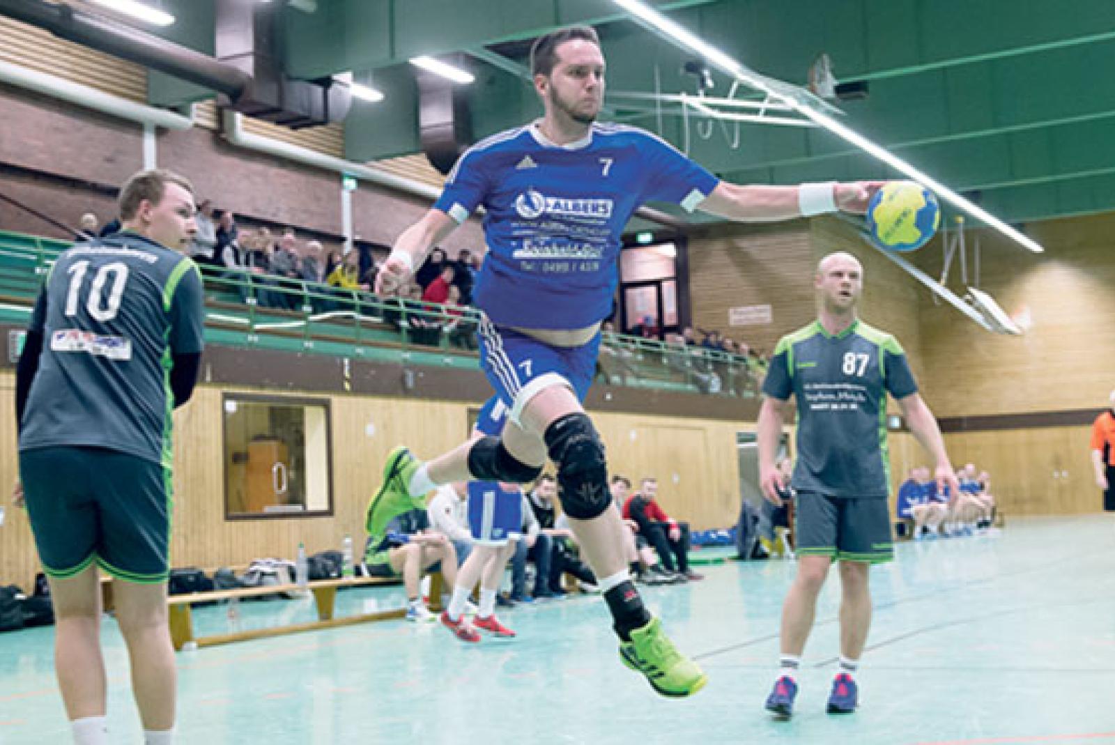 Die TuS-Handballer um Thomas Pawlik überzeugten gegen den Wilhelmshavener HV.  © Fotos: Bruins
