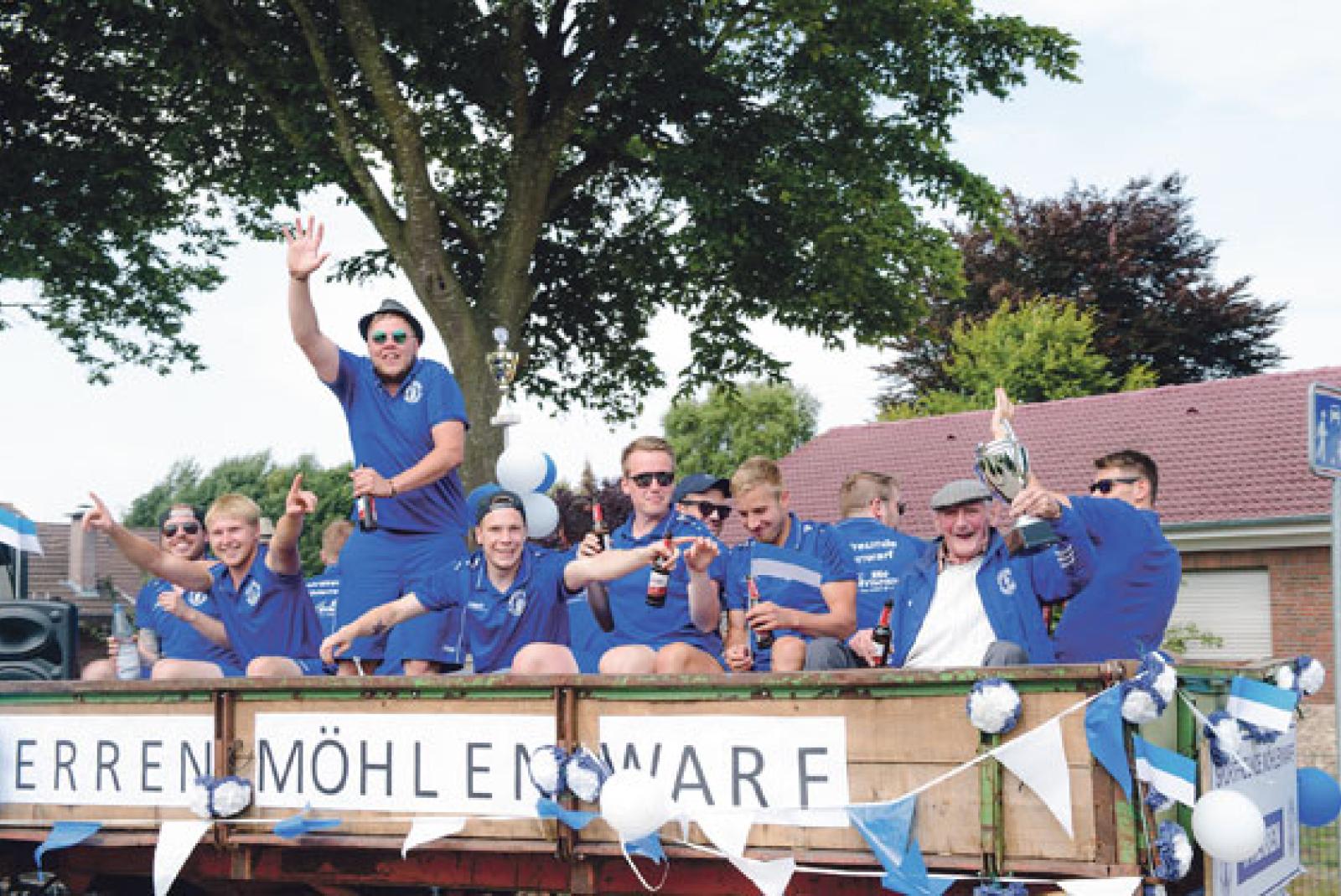 Sportfreunde und Gäste feiern ausgelassen ihren Umzug
