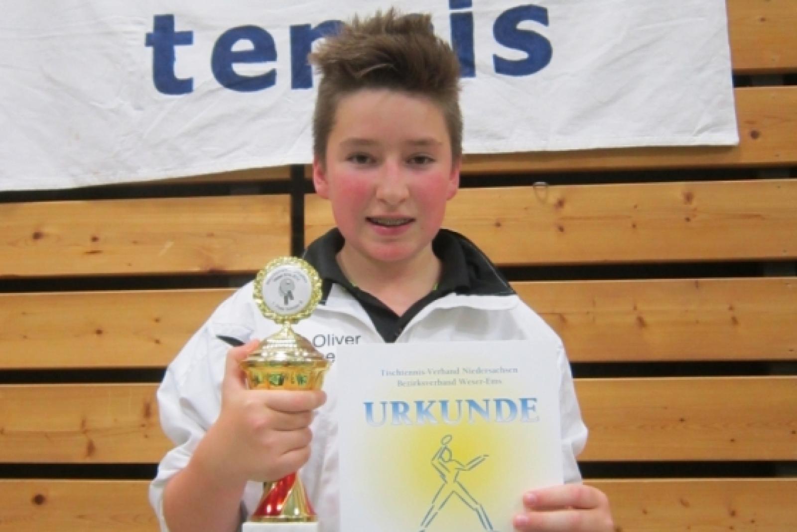 Der Geheimfavorit hat sich den Titel geschnappt:?Oliver Reeßing ist Tischtennis-Bezirksmeister der Schüler B. Auch sein Stapelmoorer Teamkollege Johannes Siepker überzeugte.