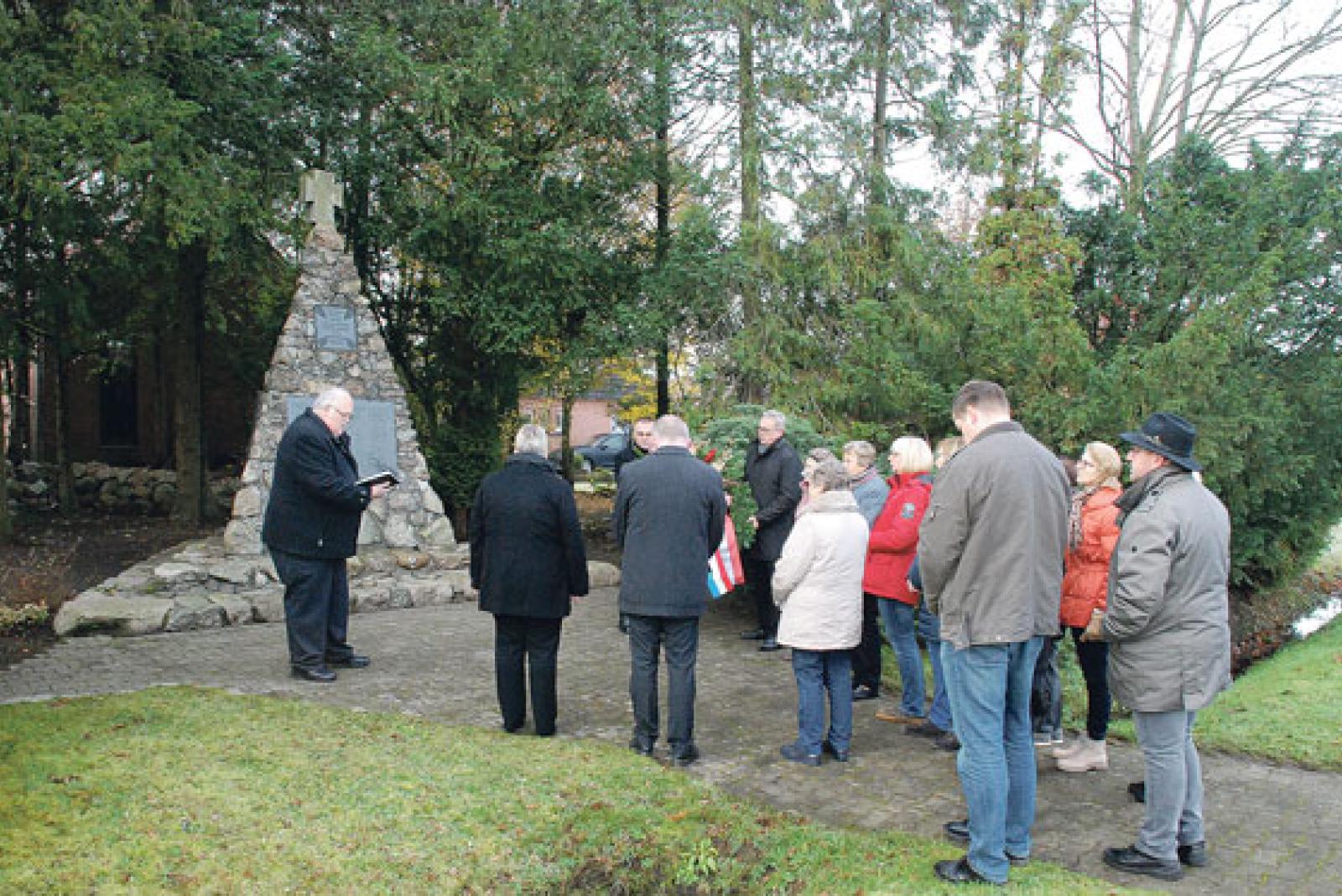In Möhlenwarf hielt Johannes Willms am Ehrenmal vor dem Gottesdienst eine Andacht mit anschließ...