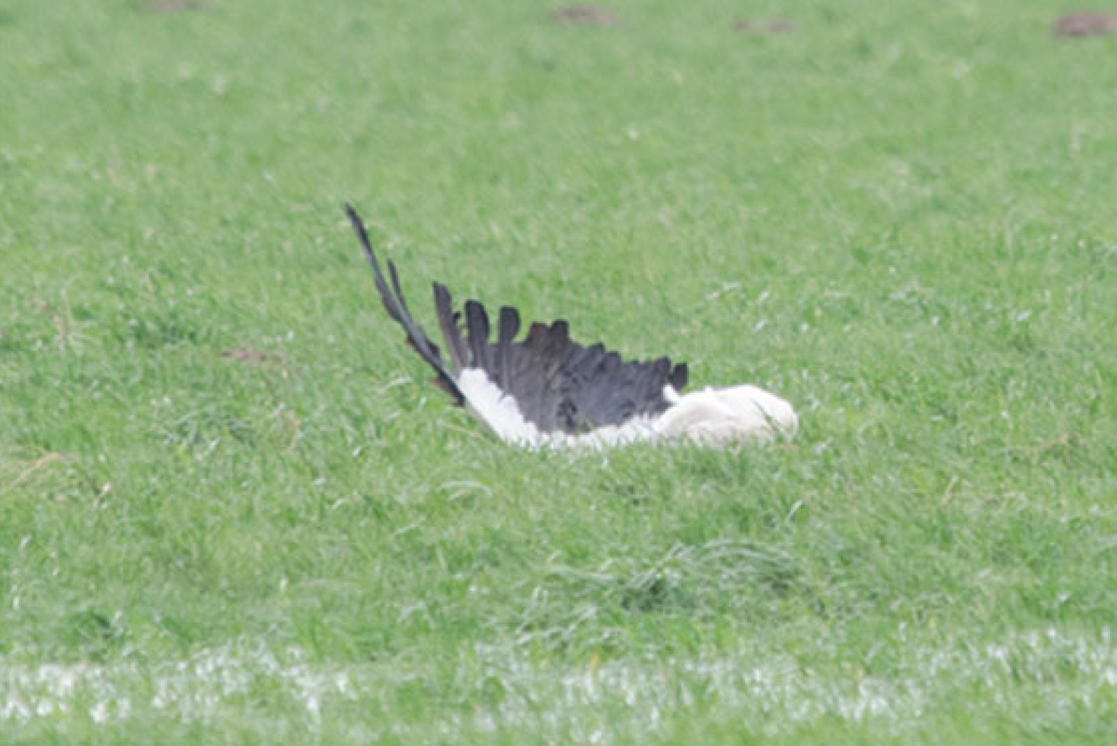 Storchendrama in Vellage: Ein Adebar ist am Montagmorgen abgestürzt und verendet. Offensichtlich flog das Tier gegen einen Hochspannungsmast. Doch es gibt auch gute Nachrichten aus der Welt der Störche im Rheiderland.