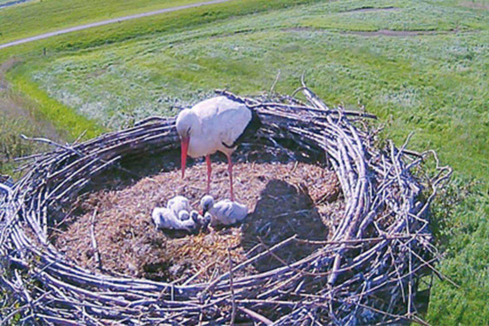Wohlbehütet in luftiger Höhe: Das erste Foto vom Storchen-Nachwuchs der Familie Hesse aus Weener-Buschfeld kann hiermit präsentiert werden. Wie berichtet, erblickten dort bis Anfang Mai fünf Jungstörche das Licht der Welt. Mindestens acht Nester ...