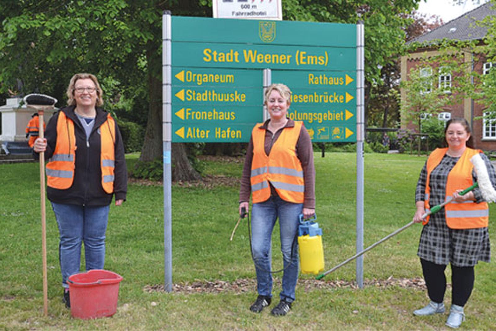 Normalerweise kümmern sich die Mitarbeiterinnen Petra Pachale, Marion Rops und Anja Wilken (von links, nicht im Bild: Anja Buizinga und Monika Müchler) um die Reinigung insbesondere der Grundschulen, Turnhallen und Kindergärten der Stadt Weener. Durch die Schließ...