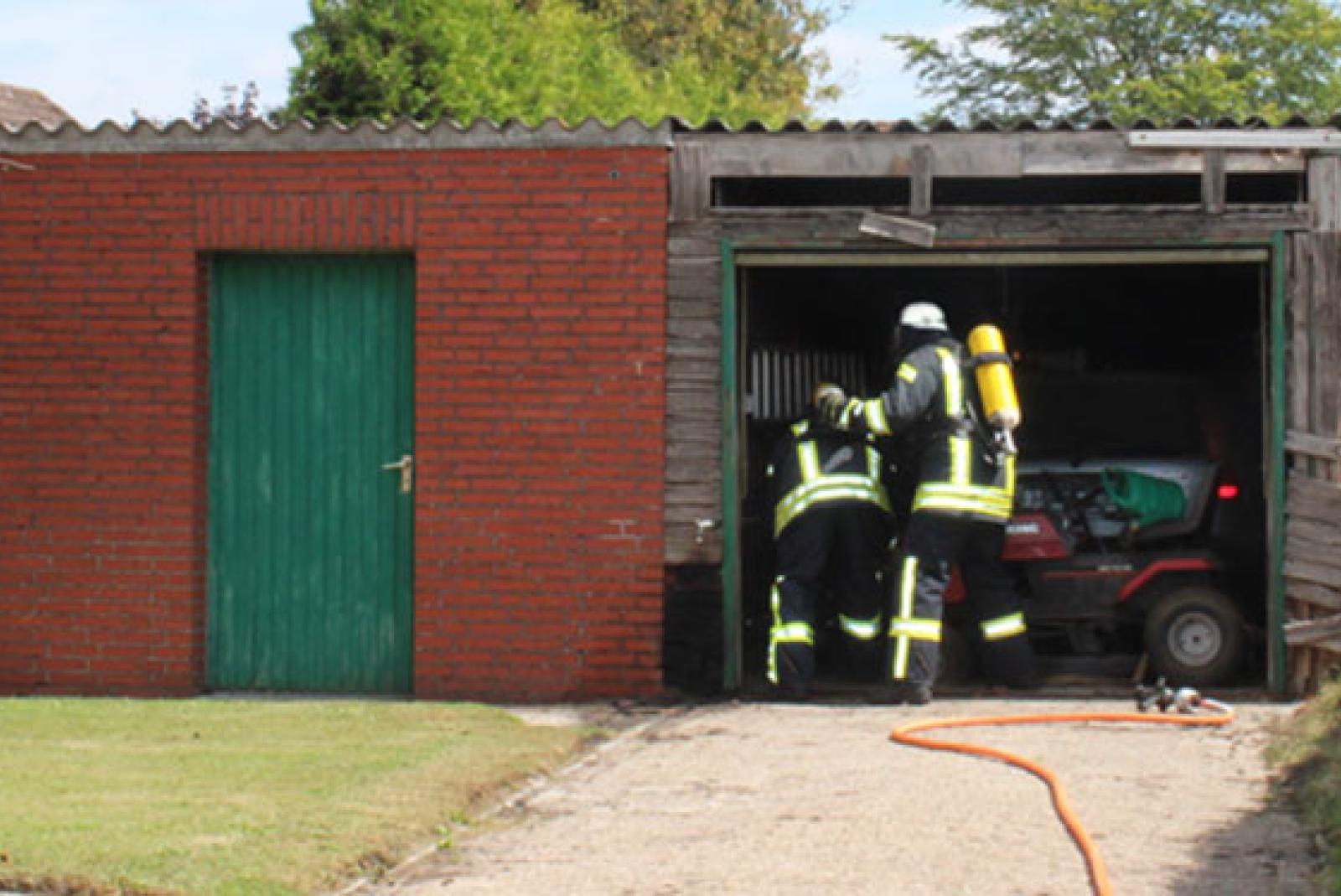 Eine Garage war im Hüttenweg in Holthusen heute Nachmittag gegen 13.40 Uhr in Brand geraten. Nachbarn hatten das Feuer gesehen und sofort den Notruf gewählt und erfolgreich erste Löschversuche unternommen.