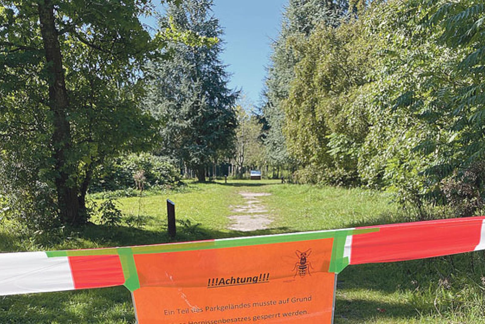 Vorsicht, Hornissen! Der Bereich rund um den Apfelgarten im Hessepark in Weener ist gesperrt, weil in diesem Bereich ein Hornissennest liegt. Die Untere Naturschutzbehörde hat angeordnet, dass das Nest noch etwa drei Wochen an Ort und Stelle bleiben muss, ...